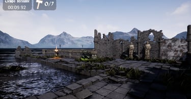 This game features a hyper-realistic 3D environment with AAA-quality visuals, incorporating elements from Infinity Blade along with custom assets tailored to the level’s requirements.